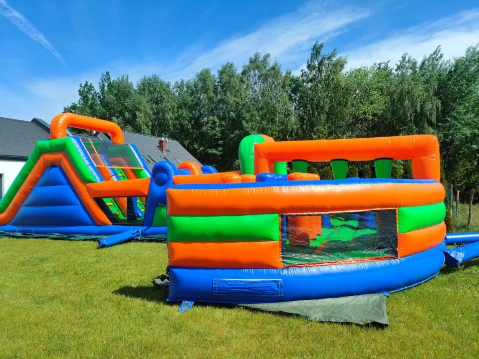 Dmuchany tor przeszkód "Ninja" to ekscytująca atrakcja, która łączy w sobie rywalizację sportową oraz zabawę!